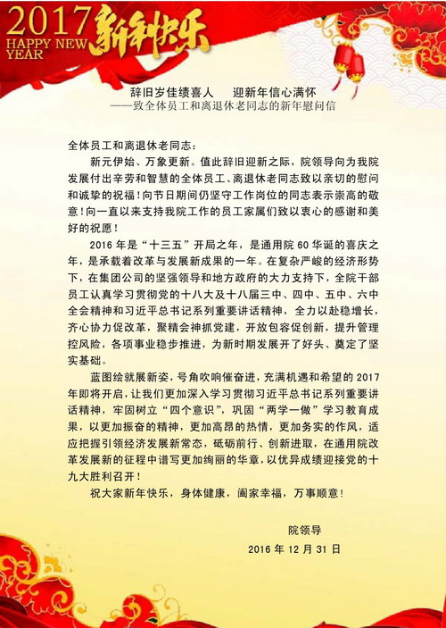 辞旧岁佳绩喜人 迎新年信心满怀――致全体员工和离退休老同志的新年慰问信